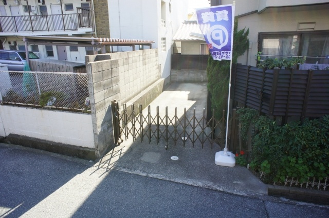 国道176号線から東へ、刀根山小学校・高校へ通じる道を進み、水路がある十字路の南東角にあります。垂谷ハイツII駐車場のご紹介です。